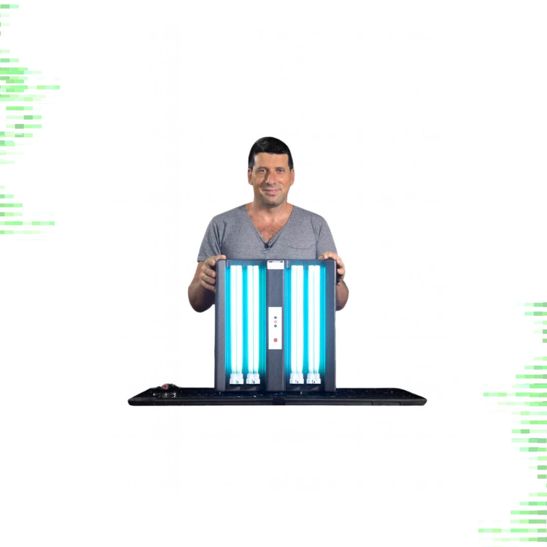Il dispositivo "large", invece, è destinato alle cliniche mediche (ma non c'è motivo per cui possa essere acquistato da un privato) e ha una potenza di oltre 600 watt solo per i raggi UVA+UVB, più altri 500 watt di luce rossa e infrarossa (a banda larga fino a 4000 nm) per potenziare il trattamento, fornendo energia con un ingrandimento della zona EZ anomala e un ulteriore trattamento cutaneo per il soggetto, ad esempio riparando l'inevitabile stress ossidativo dei raggi UV... Infine, è dotato di un esclusivo software di controllo basato sul tuo fototipo.